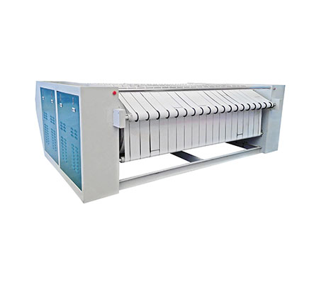 * 不锈钢辊筒配合优质耐热送布带,将待熨烫的布草抱紧于辊筒上,达到优质的熨烫效果。